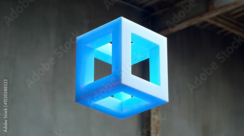 The watermark will not be included on Sticker.: Geometric glowing cube floating in a weathered, textured, muted background