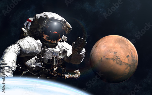 Giant astronaut and little mars - image in 5k resolution for desktop wallpaper - elements of the imageSticker