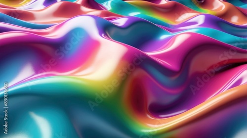 Sticker gleaming chrome fabric bright gradient 3d wave background