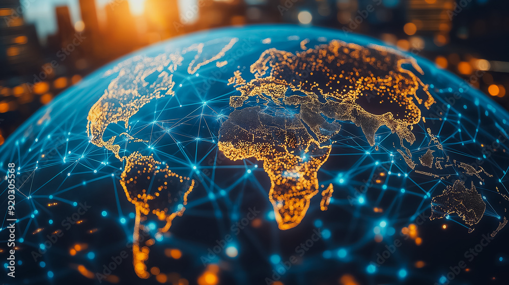 Global business and digital organization concept with a business team working on global network connSticker