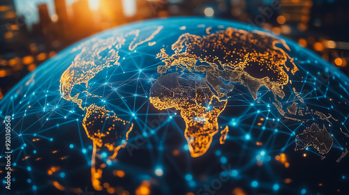Sticker : Global business and digital organization concept with a business team working on global network conn