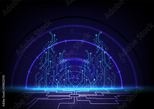 The watermark will not be included on Sticker.: Global digital technology internet network circuit board concept background