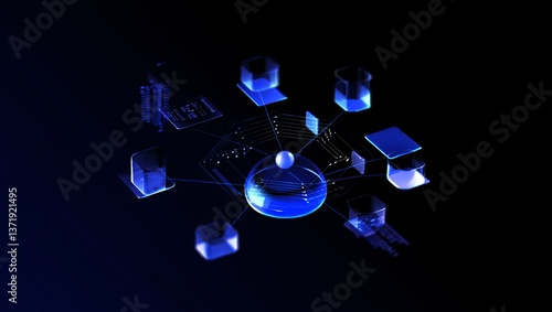 The watermark will not be included on Sticker.: Global network futuristic digital data transfer and connectivity visualization
