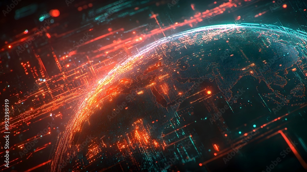 The watermark will not be included on Sticker.: Glowing ai powered communication network symbolizing global connectivity and futuristic digital ecos