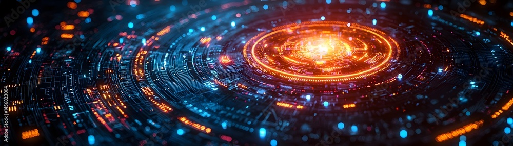 The watermark will not be included on Sticker.: Glowing circular interface with interactive holographic icons