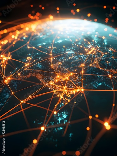Sticker : Glowing global network of interconnected energy and data points across the night sky