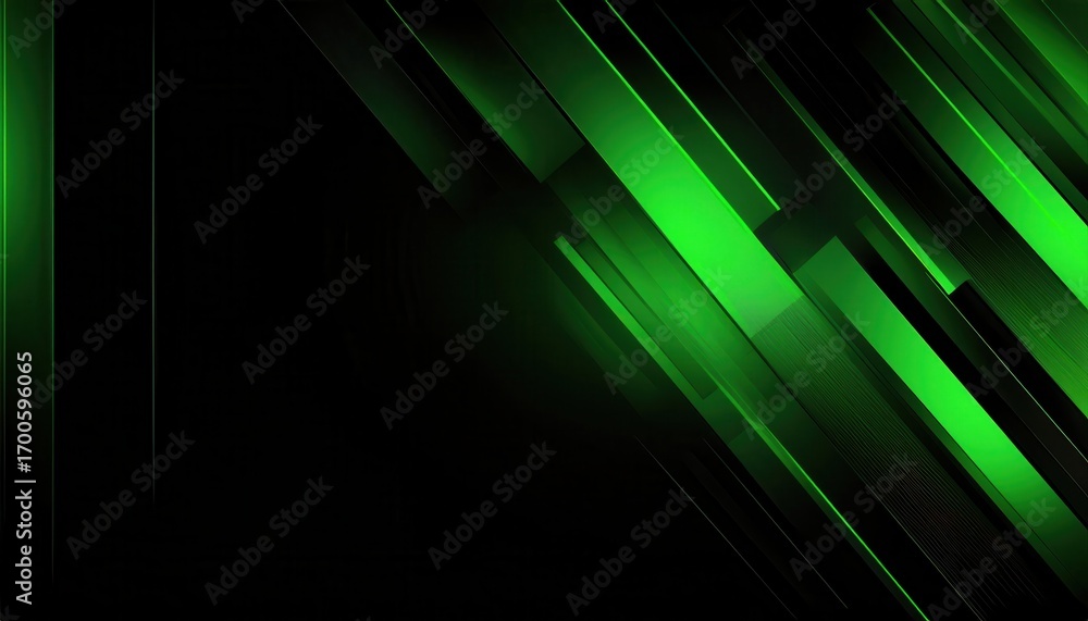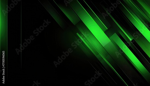 Sticker : Glowing green abstract digital lines on black background with sleek geometric shapes perfect for mod