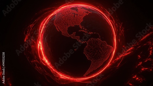 Sticker glowing red neon planet with rings in dark space generative ai - Stickers Sticker glowing red neon planet with rings in dark space generative ai - Stickers