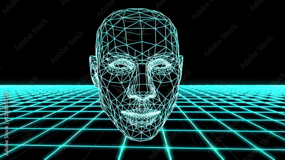 The watermark will not be included on Sticker.: Glowing turquoise grid expands across a dark digital space, creating a futuristic and technological