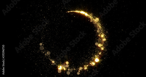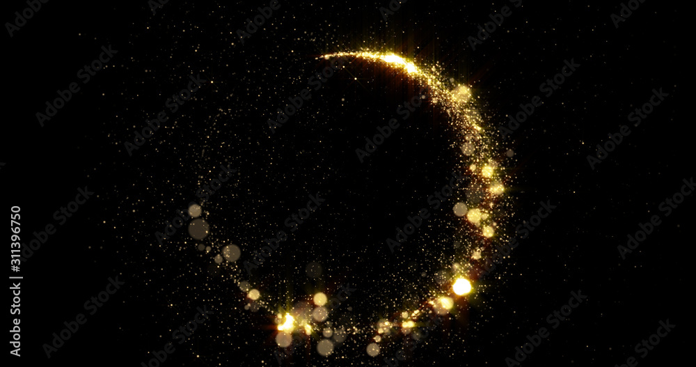 Sticker : Gold sparkling light circle with shimmering particles with glare flare effect - christmas and new yea