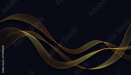 Sticker : Golden abstract wave lines flowing across dark background with smooth gradient, modern futuristic te