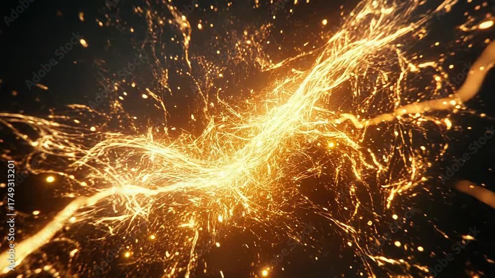The watermark will not be included on Sticker.: Golden energy discharge creating abstract light particle explosion