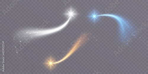 Sticker golden magic comet with lots of sparkling dust shimmering light effects. magic golden wind for web d