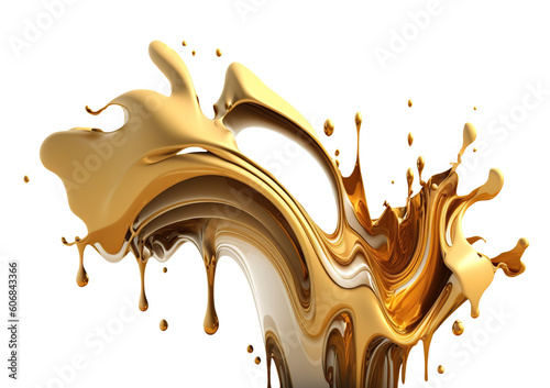 The watermark will not be included on Sticker.: Golden paint splash - gold color isolated design element on the transparent background - generative ai