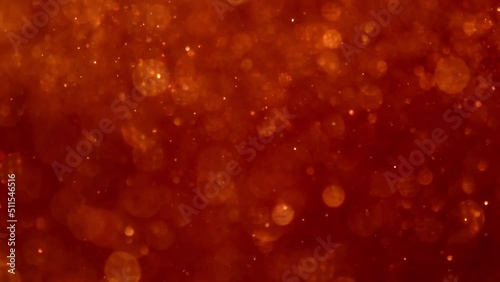 Golden particles movement in red liquid - gold dust particles and bokeh moving slowly in red fluid - aSticker