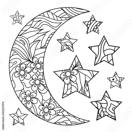 The watermark will not be included on Sticker.: Half moon and star with abstract patterns on isolation background - design for spiritual relaxation f