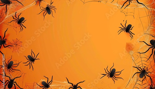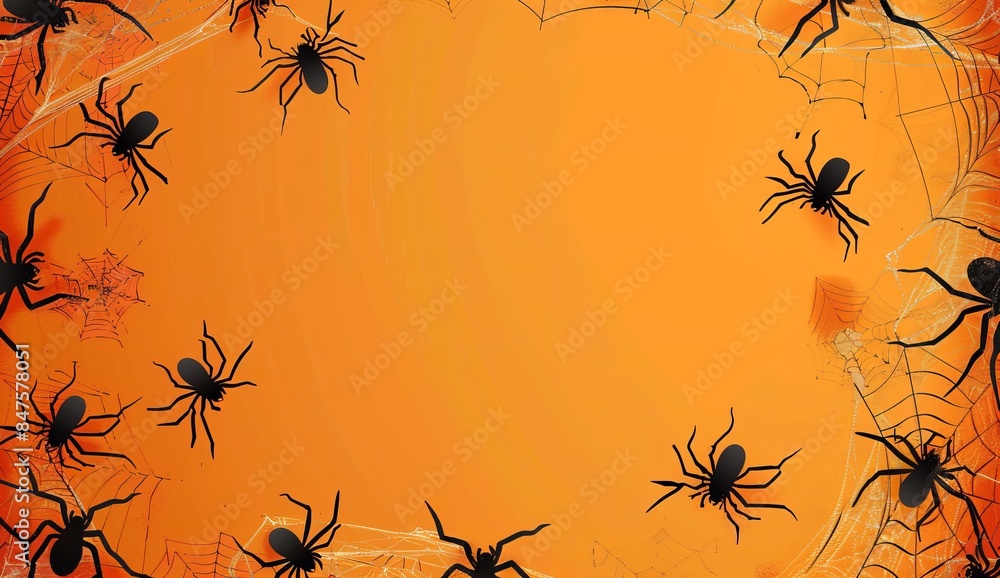 The watermark will not be included on Sticker.: Halloween background with spider web and cobwebs on orange with background design
