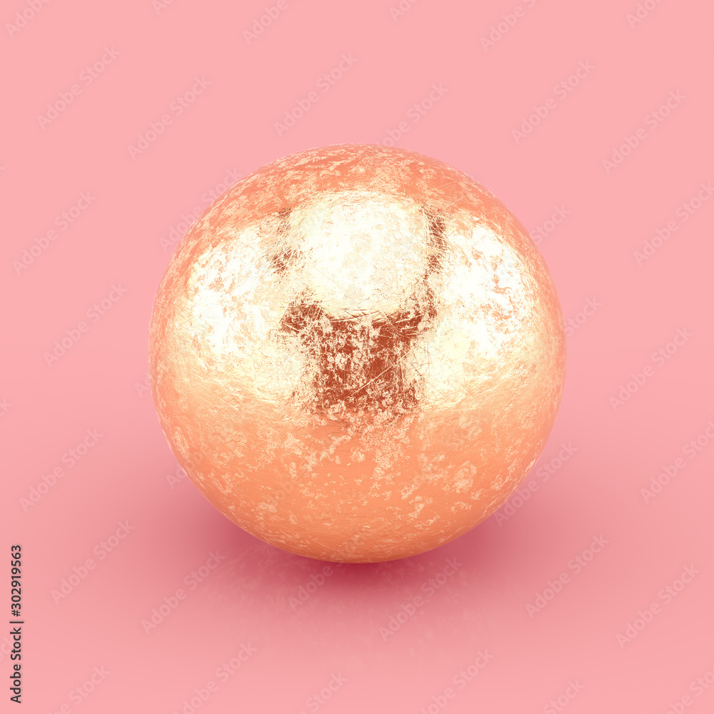 Sticker : Hammered gold sphere with scratches and imperfections - realistic 3d rendering -