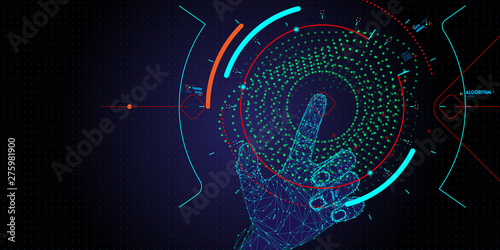 The watermark will not be included on Sticker.: Hand touching the future user interface technology and the future of user experience -