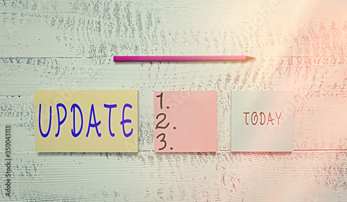 Sticker handwriting text writing update. conceptual photo make something more modern adding new facts changi