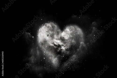 Heart-shaped nebula with starry background in black and white, created with generative aiSticker
