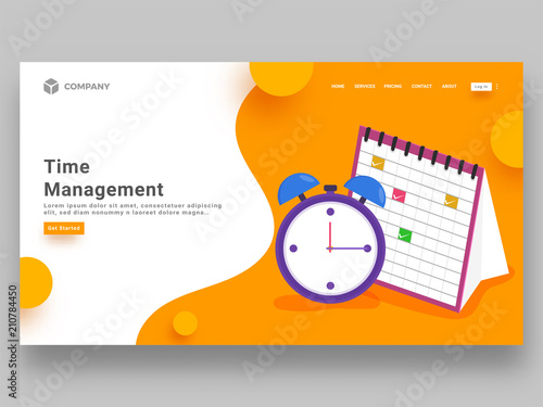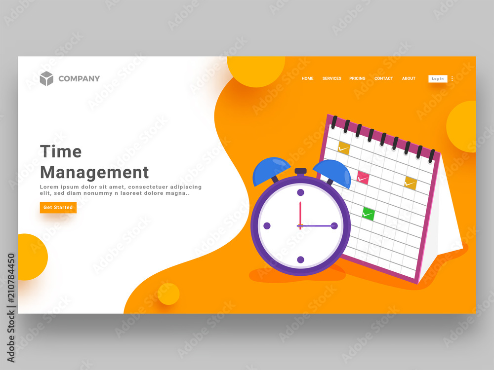 The watermark will not be included on Sticker.: Hero banner or web template design, time management concept with marking of completed task within ti