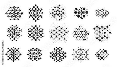 Sticker hexagonal chemical mesh icons vector set. molecular structure grids chemistry patterns dna scientifi - Stickers Sticker hexagonal chemical mesh icons vector set. molecular structure grids chemistry patterns dna scientifi - Stickers