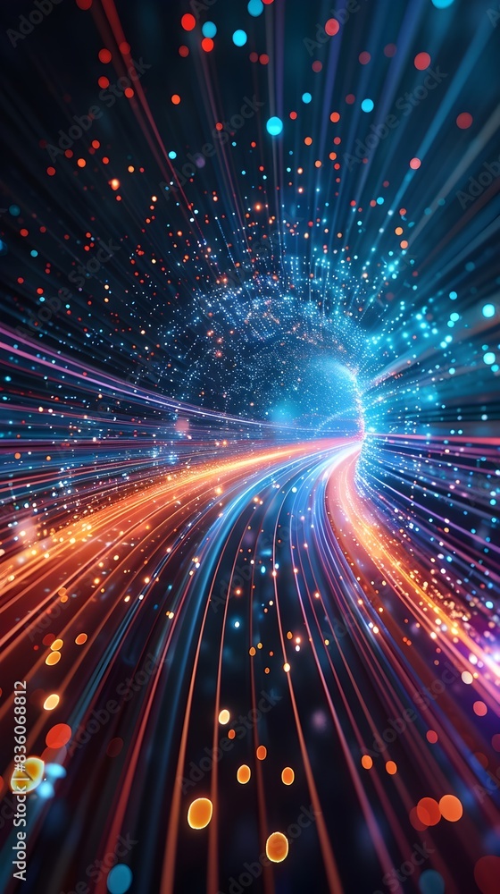 The watermark will not be included on Sticker.: High speed digital data transfer abstract representation of futuristic technology concept
