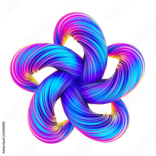 Sticker : Holographic abstract twisted shape in fluid design 3d render
