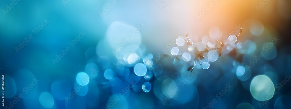 The watermark will not be included on Sticker.: Horizontal blue abstract bokeh blurred color background with lens flare
