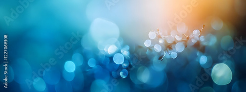 Sticker horizontal blue abstract bokeh blurred color background with lens flare