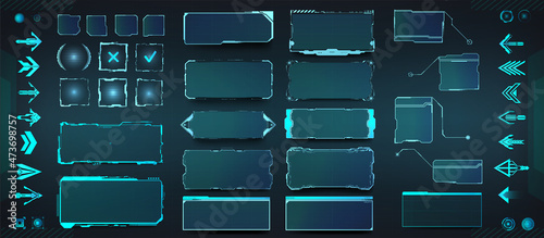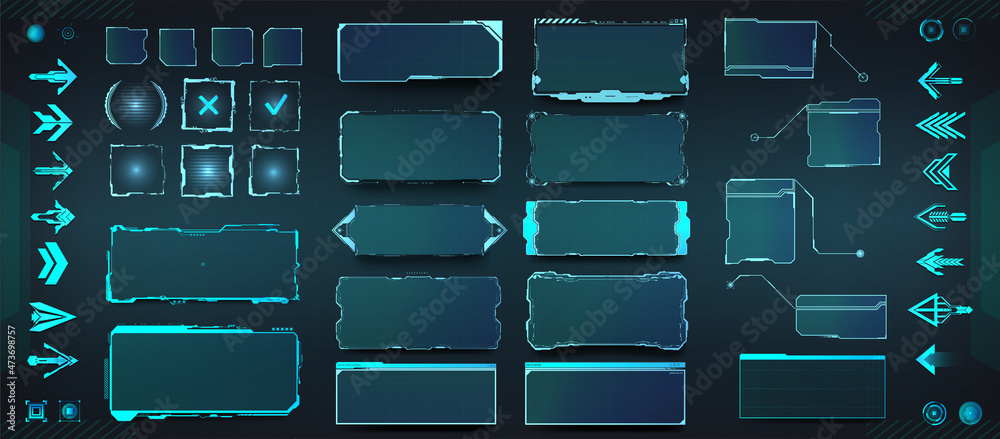 The watermark will not be included on Sticker.: Hud elements set - frame screen, arrows, callouts, button, futuristic ui bars - hi-tech elements for