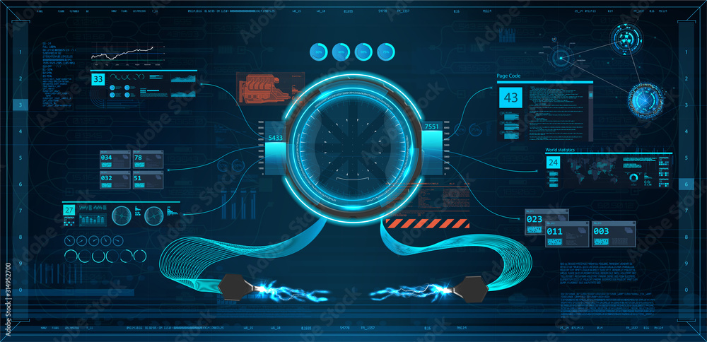 Sticker : Hud ui cockpit set - head up display, futuristic user interface set - sci-fi for app(cockpit, interfac