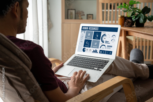 The watermark will not be included on Sticker.: Human resources management software on computer screen helping human resources employee to manage re