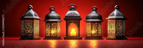 The watermark will not be included on Sticker.: Illuminated decorative lanterns on a red background: a beautiful display of light and craftsmanship