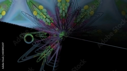 Sticker illustration abstract of a colorful circle shape with spider lines and black background