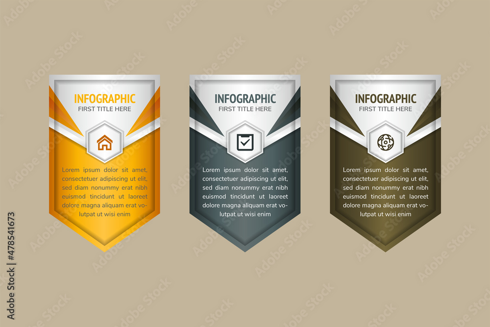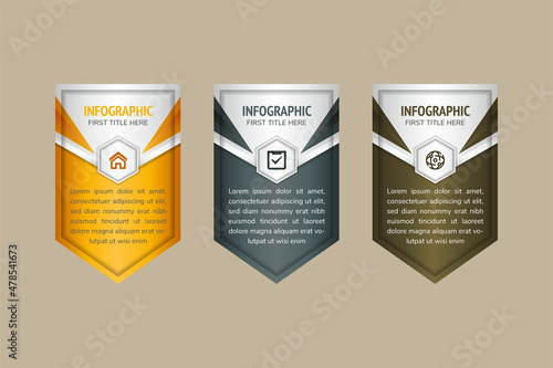 Infographic design template with security shield shape - creative concept with 3 steps - modern luxurySticker