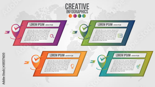 Sticker : Infographic modern timeline design vector template for business with 4 steps or options illustrate a