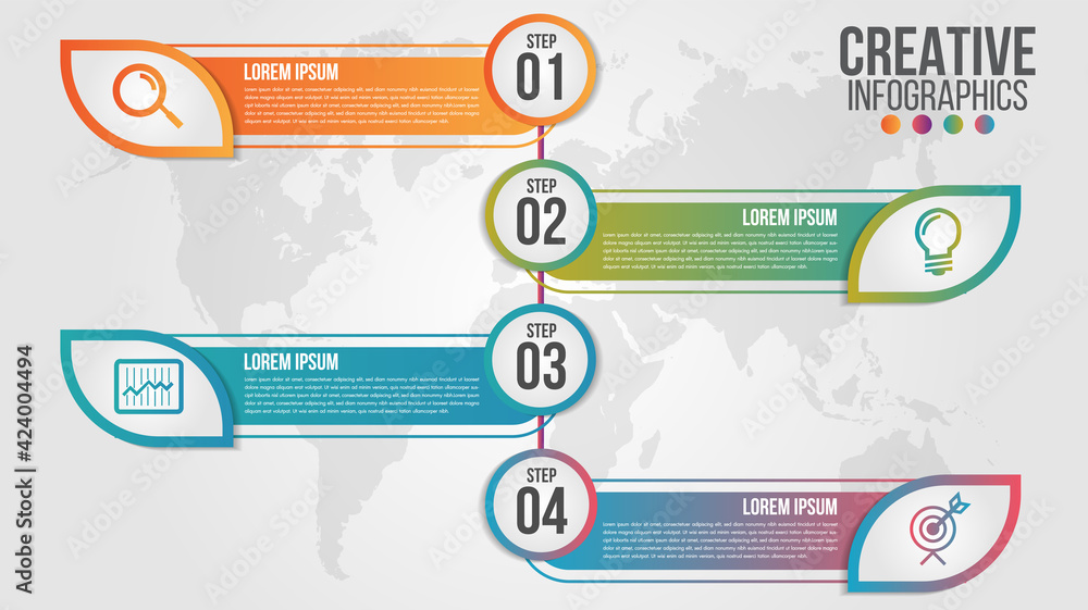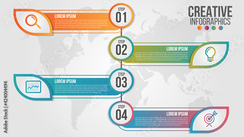 The watermark will not be included on Sticker.: Infographic modern timeline design vector template for business with 4 steps or options illustrate a