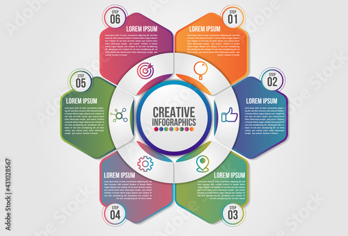 Sticker : Infographics chart 6 steps options business concept horizontal timeline process template - vector mod