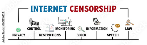 Internet censorship concept - illustration with keywords and icons - horizontal web bannerSticker