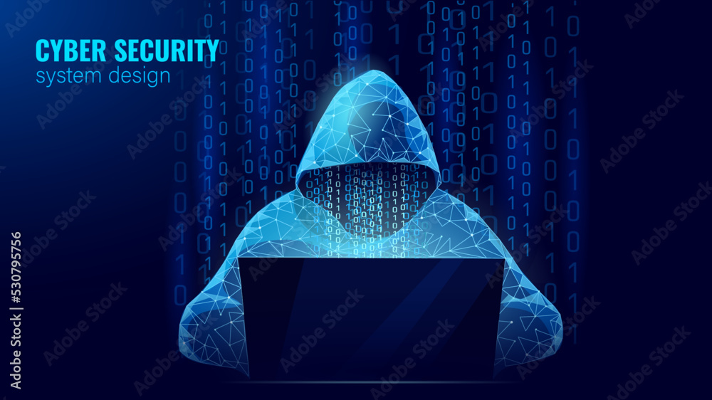The watermark will not be included on Sticker.: Internet security cyber attack business concept low poly - anonymous hacker at the laptop computer bl