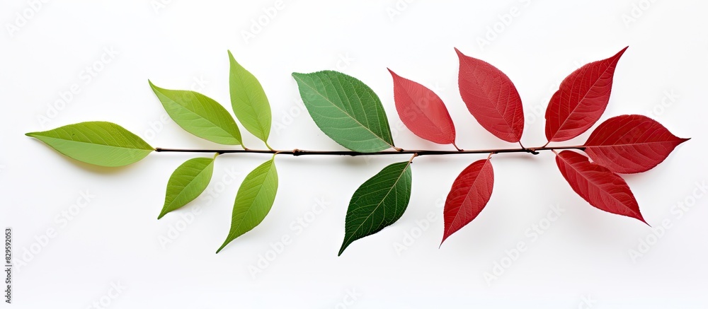 Sticker : Isolated red and green leaves on a white background with copy space image