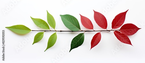 The watermark will not be included on Sticker.: Isolated red and green leaves on a white background with copy space image