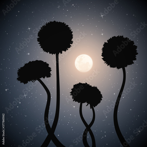 Sticker landscape with dandelions. full moon in night starry sky - Stickers Sticker landscape with dandelions. full moon in night starry sky - Stickers