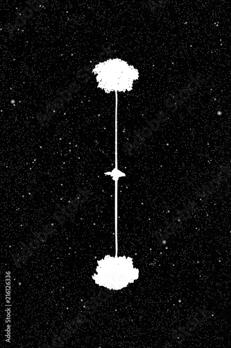 Sticker landscape with lonely tree at night. vector illustration with isolated silhouette of maple reflected - Stickers Sticker landscape with lonely tree at night. vector illustration with isolated silhouette of maple reflected - Stickers