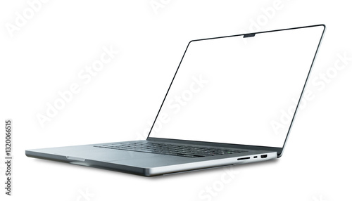 The watermark will not be included on Sticker.: Laptop computer with blank transparent screen and background- png format -