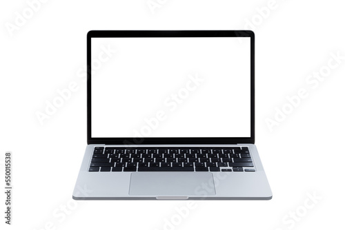 The watermark will not be included on Sticker.: Laptop computer with blank transparent screen and background- png format -
