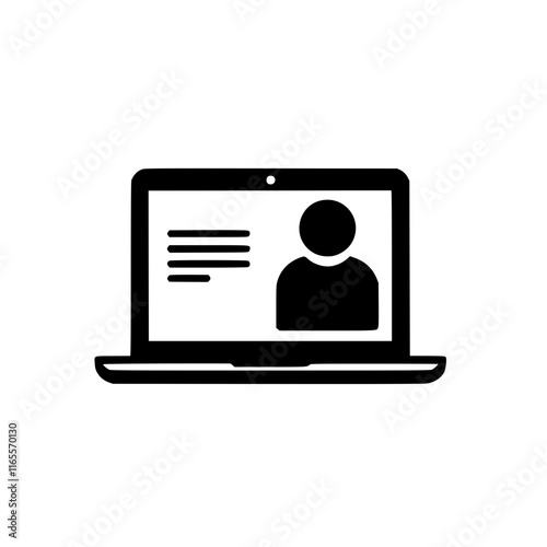 The watermark will not be included on Sticker.: Laptop displaying a profile - simple black and white icon showing a person's profile on a computer sc