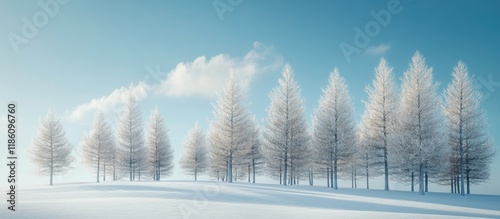 Larch trees in a snowy field beneath a blue sky - with copy space image - place for adding text or desSticker